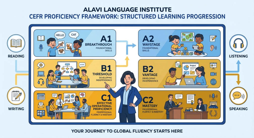 راهنمای جامع سطوح CEFR و نقش آن در استاندارد آموزشی آموزشگاه زبان علوی