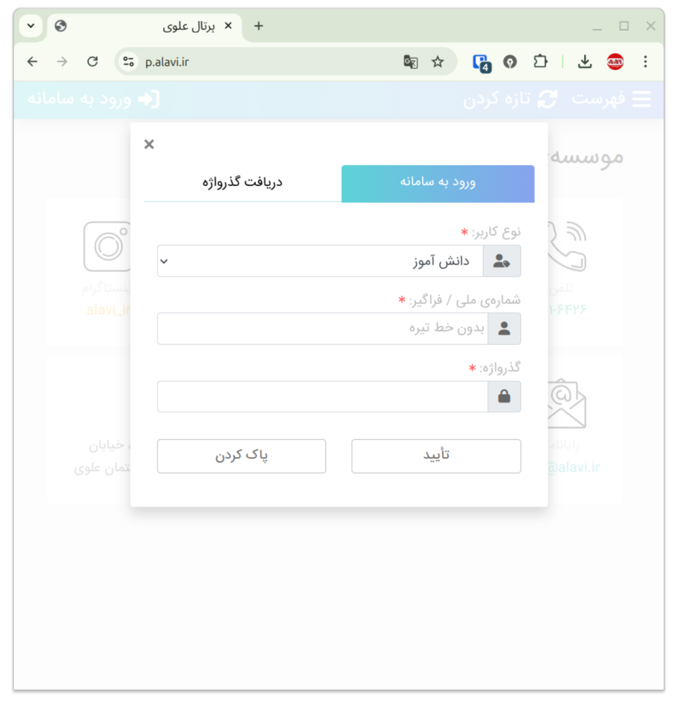 راهنمای ورود به پنل کاربری در پورتال علوی